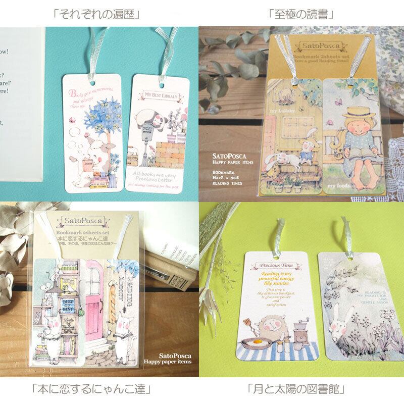 ※SatoPoscaブックマーク4枚セットは「至極の読書」・「本に恋するにゃんこ達」・「月と太陽の図書館」・「それぞれの遍歴」・「ぐびぐびペロリ」・「こだわりの活字タイム」・「そのための腹ごしらえ」・「ピックアップ Boo Boo」・「朝から晩まで伝言ゲーム」・「自由の真髄」との組み合わせもできます(各タイトル2種セット×2で計4枚)。