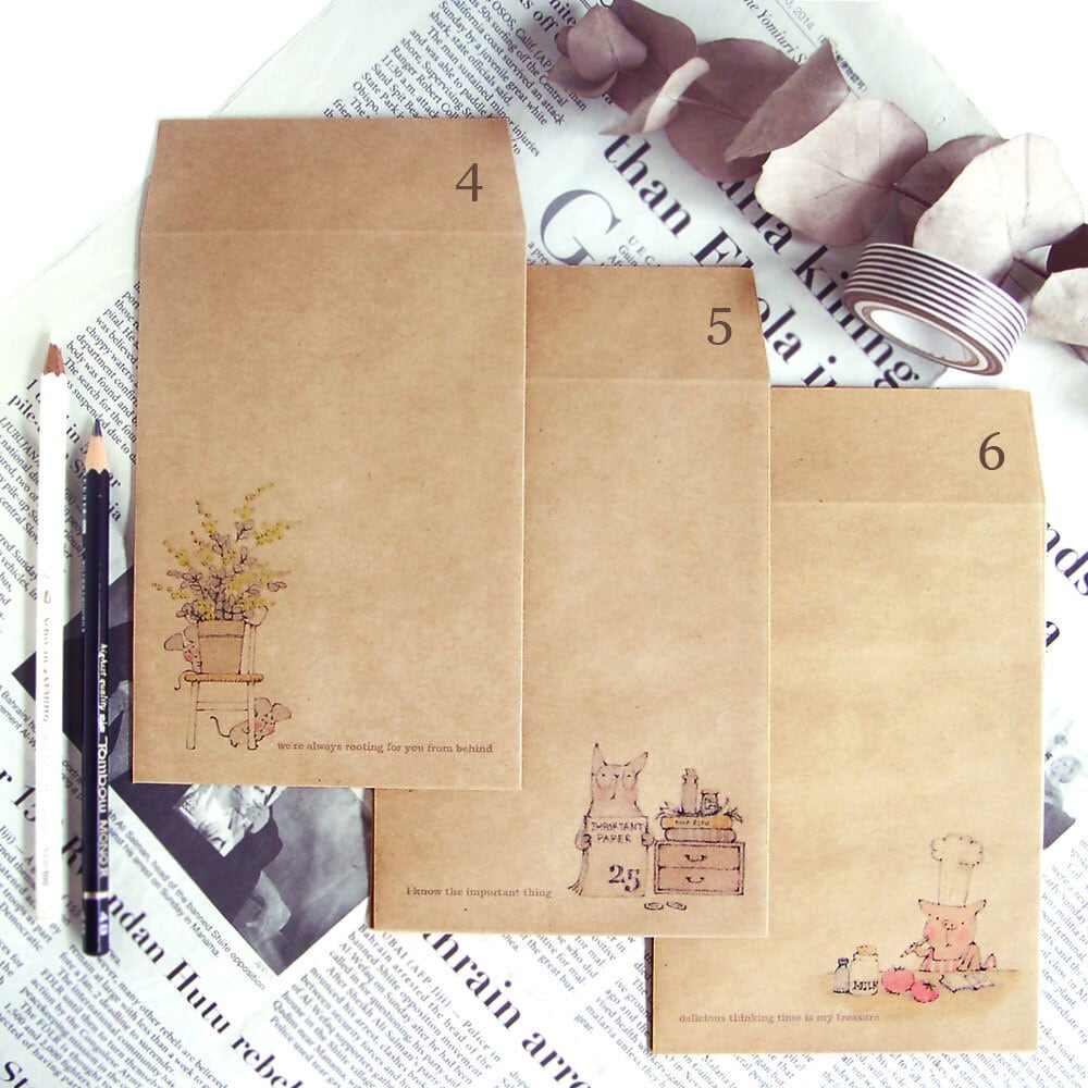 マイペースな仲間たちのクラフト封筒 3袋セット。