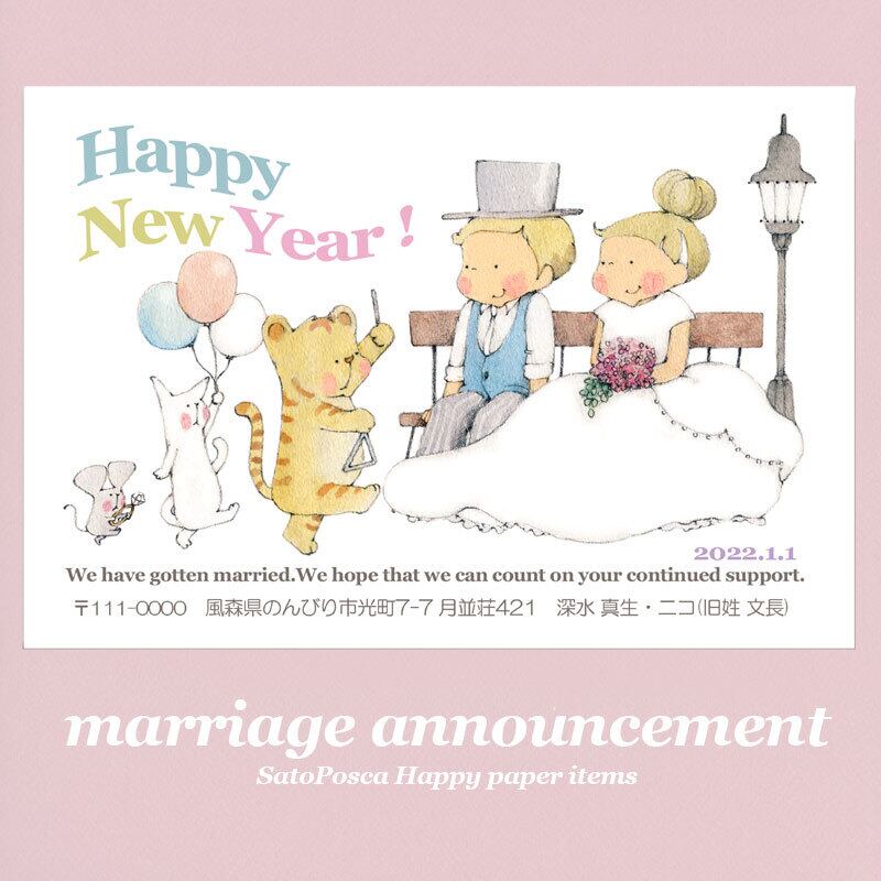 結婚報告年賀状「バラ色行進曲」 セミオーダー