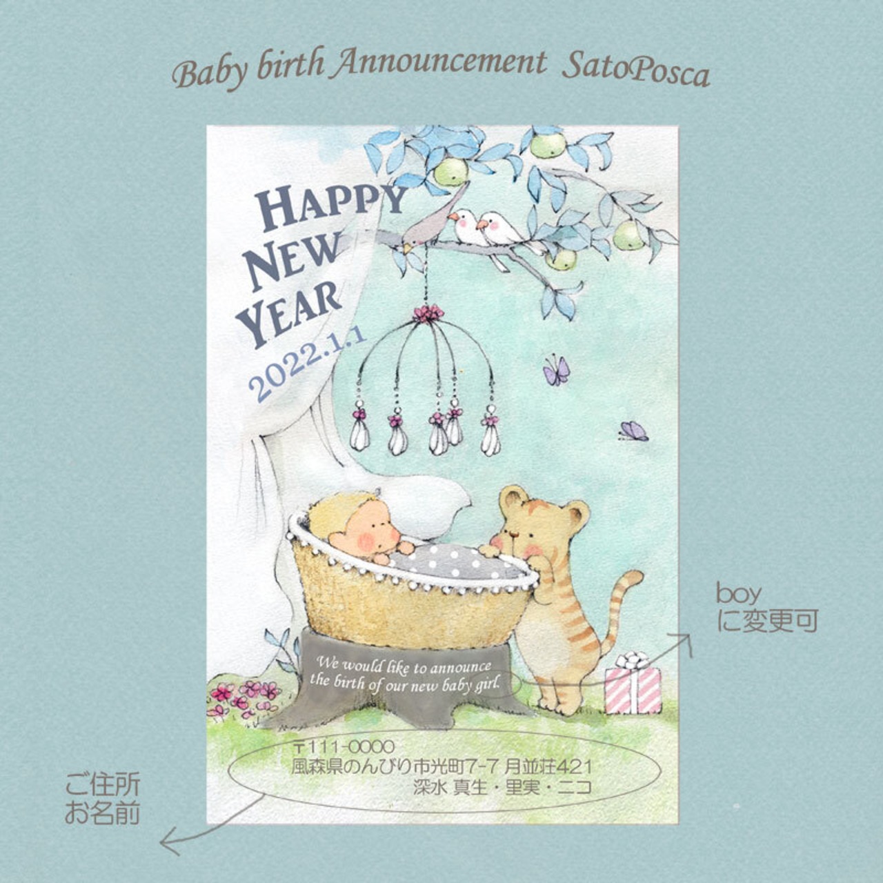 出産報告年賀状「秘蔵のトラの子」 差出人印刷